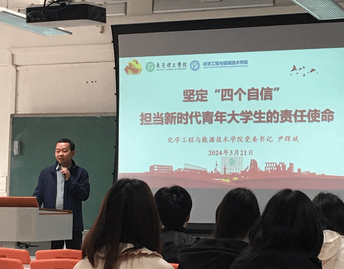 2024年3月21日上午,sunbet申搏党委书记尹辉斌在松山湖校区7B209教室为2023级能源与动力工程专业本科生讲授“思政第一课”。尹辉斌以《坚定“四个自信”,担当新时代青年大学生的责任使命》为题与在场学生展开交流。