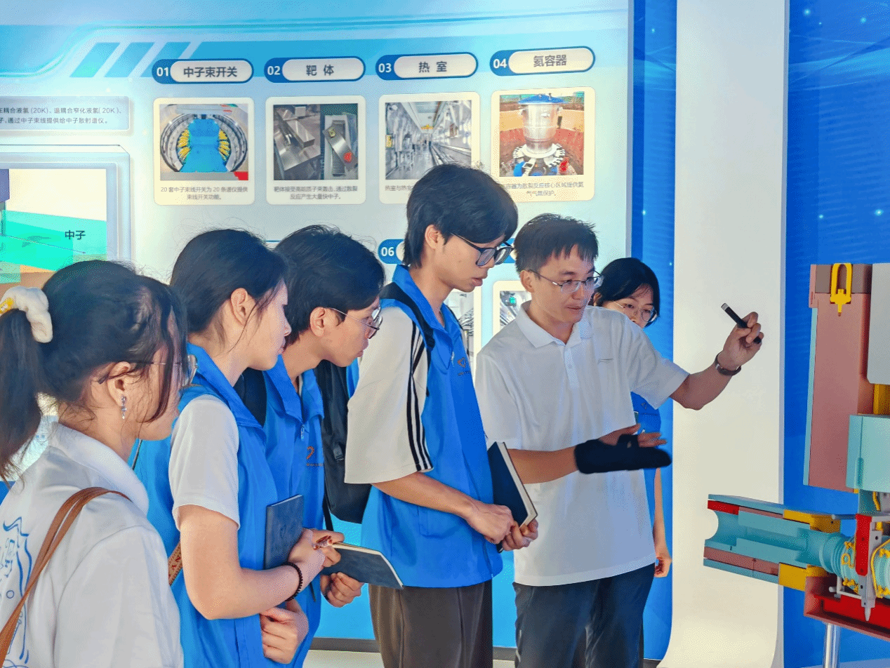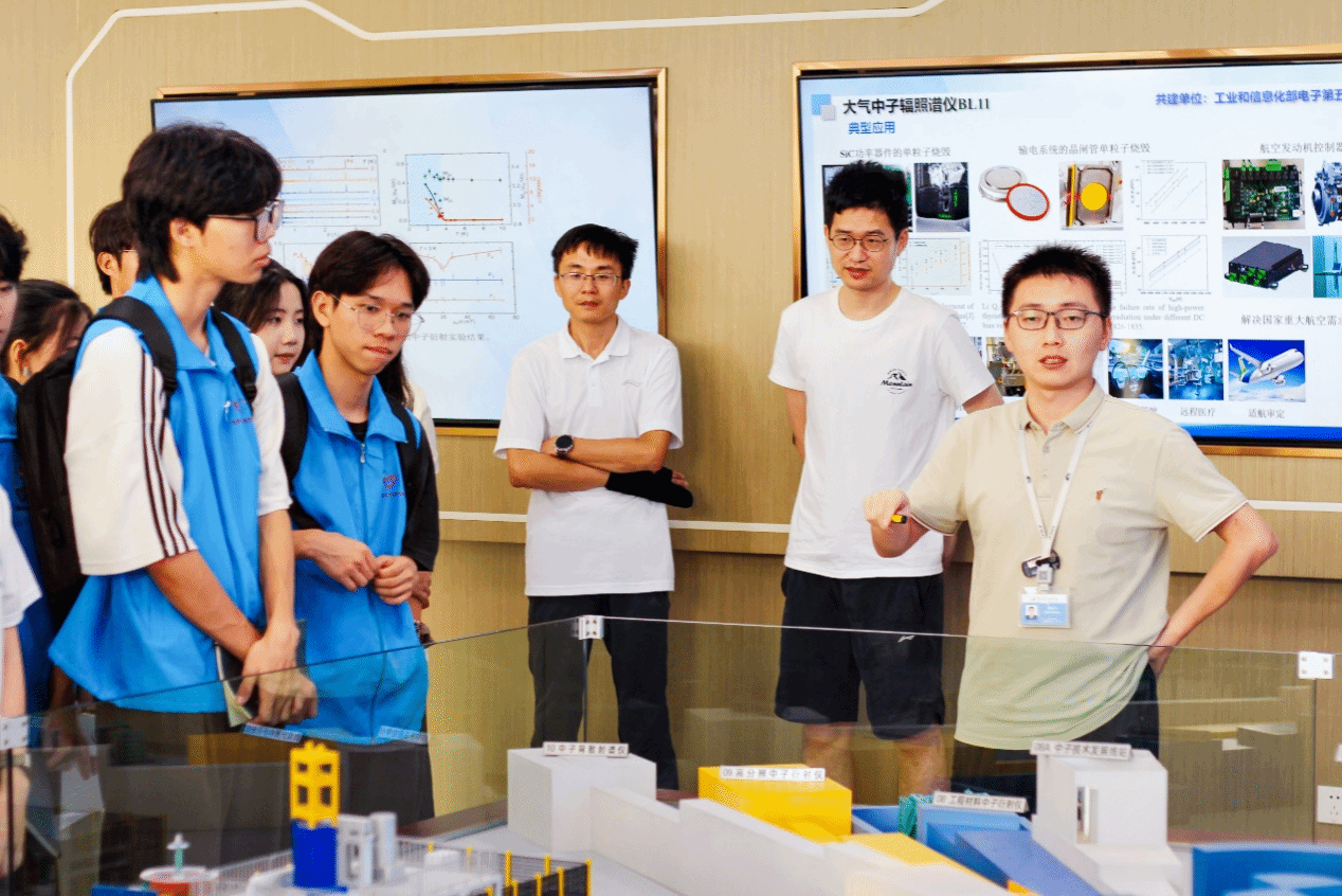 在散裂中子源靶站谱仪大厅,工作人员带领师生逐一深入了解散裂中子源的实验设备和科研项目。其中多物理谱仪为“粤港澳中子散射科学技术联合实验室”提供关键支撑。“这个实验室由散裂中子源科学中心、香港城市大学与我校共同建设。比如,锂离子电池材料中含有局域无序结构。利用这台谱仪可以了解其在充放电过程中结构的实时变化,可以帮助研发人员了解电池的失效机制,有助于解决该领域存在的关键技术问题。”中子科学部团支部宣传委员高德祥举例说。在B7靶站参观过程中,同学们亲眼目睹中子源的工作原理和实验操作,感受到了科技创新的魅力和无限可能。
