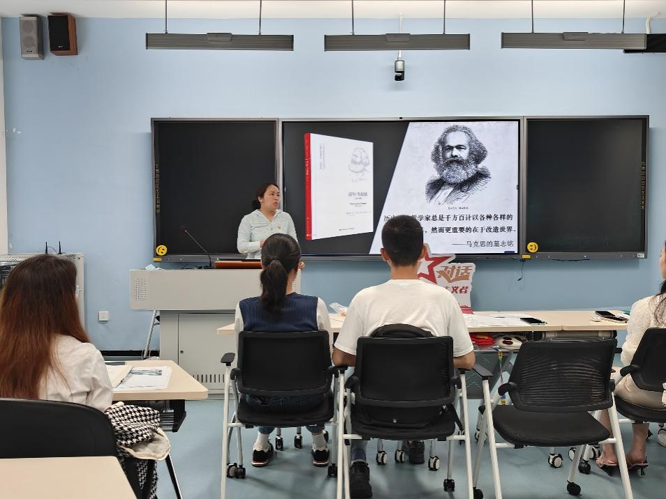 本期读书分享会共读的书目为《青年马克思》。分享会伊始,刘哲老师引用习近平总书记在纪念马克思诞辰200周年大会上的讲话内容,强调“马克思主义不仅深刻改变了世界,也深刻改变了中国。”中国共产党把马克思主义基本原理同中国革命和建设的具体实际结合起来,取得了历史性成功。早在中学时代,马克思就树立了为人类幸福而工作的志向。大学时代,他广泛钻研哲学、历史学、法学等知识,探寻人类社会发展的奥秘。阅读《青年马克思》这本书,从马克思的奋斗经历中可以学习马克思是如何培养批判性思维、追求真理、关注社会公正和全面发展的价值观,同时也能够学习到如何将理论与实践相结合,以及如何在全球化背景下思考和解决问题。