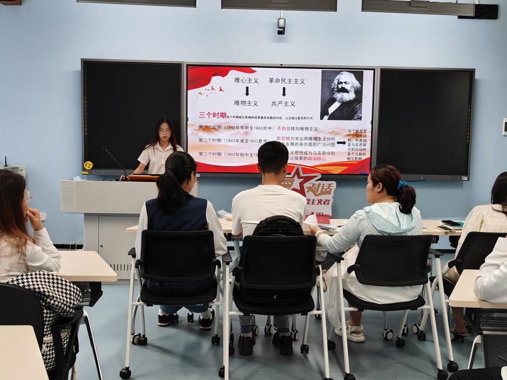 入党积极分子何晏宜等5位同学先后分享了各自阅读书目篇章的感想与启发。同学们围绕马克思主义的现实意义及在实践中的应用展开思想交流,共同探讨如何将理论联系实际。