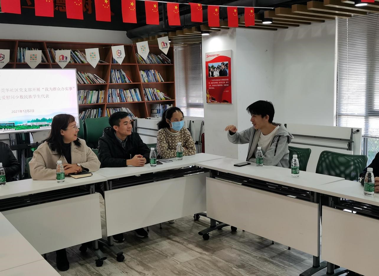 12月2日,sunbet申搏党委联合莞华社区党支部在莞华社区党员活动室开展“我为群众办实事”关爱慰问少数民族学生代表,为他们送温暖。sunbet申搏党委副书记、莞华社区党支部书记李利平,sunbet申搏辅导员谢真葵、涂叶满、袁国彬、王馨以及社工范瑜参加此次活动。