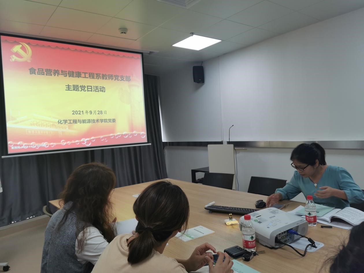 2021年9月28日,sunbet申搏,sunbet申搏食品营养与健康工程系教师党支部在科创院3楼食品平台会议室开展九月份主题党日活动暨纪律教育、师风师德学习,食品系教师党员参与了此次活动。