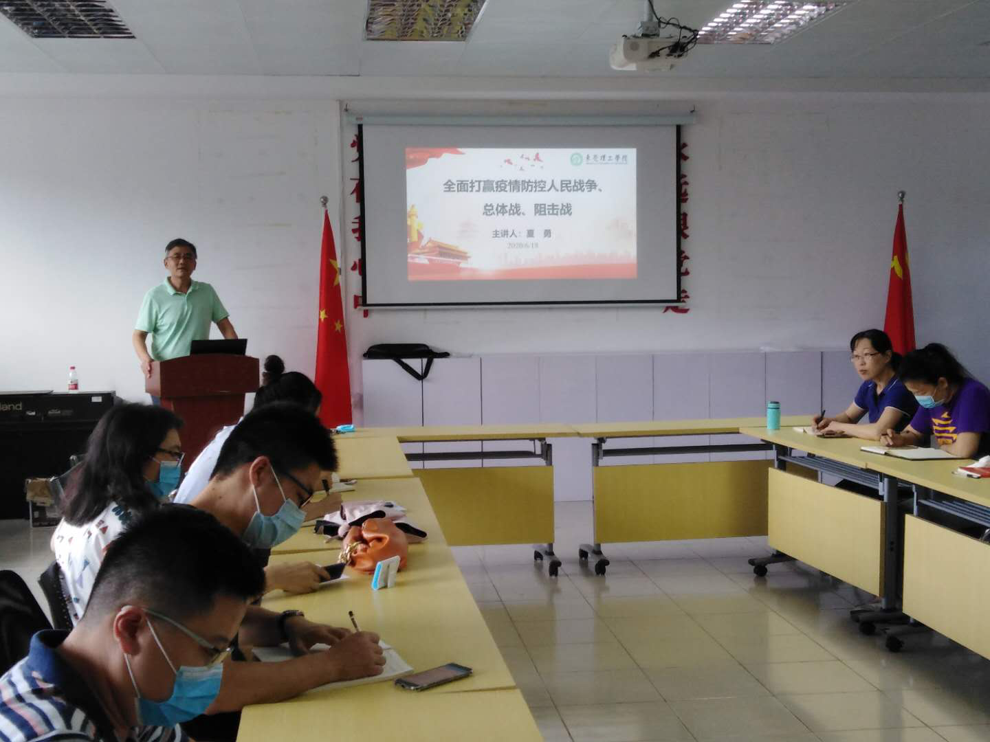 2020年6月18日下午,在12L103sunbet申搏食品营养与健康工程系党支部邀请了sunbet申搏党委书记夏勇同志给全体支部党员上了一堂精彩的党课。党课的主题是“全面打赢疫情防控人民战争、总体战、阻击战”。