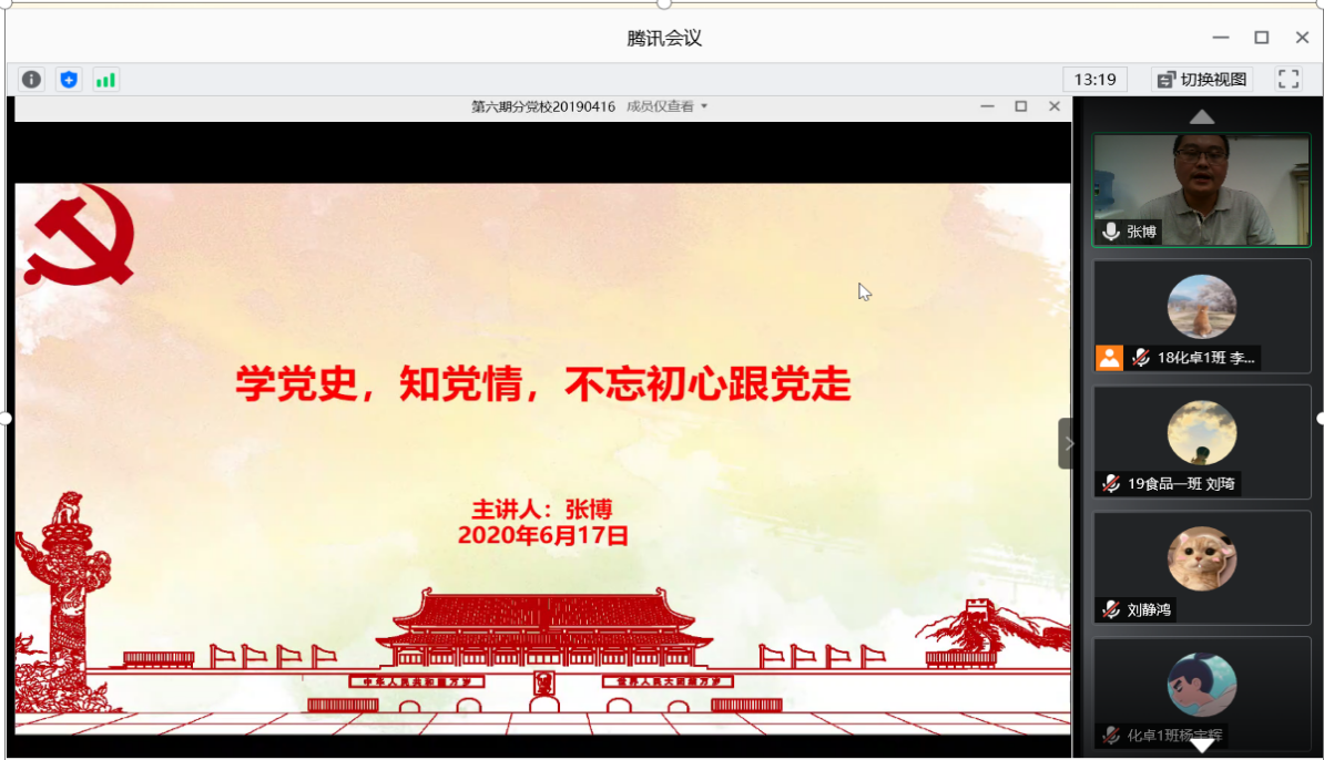 2020年6月17日,sunbet申搏应化与食品学生支部书记张博通过腾讯会议形式为支部党员和入党积极分子讲授“学党史,知党情,不忘初心跟党走”主题党课。