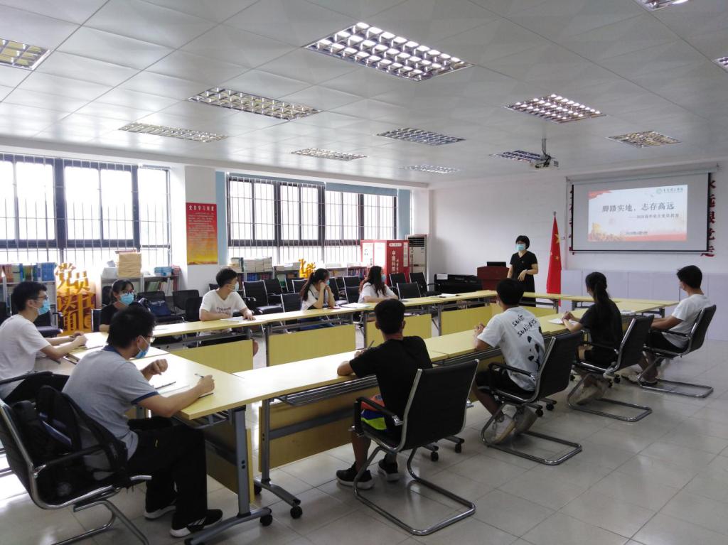 6月9日下午,sunbet申搏党委副书记柳卓君为2020届毕业生党员上了一堂题为《脚踏实地,志存高远》的党课。应化与食品学生党支部书记张博及毕业生党员参加了学习。