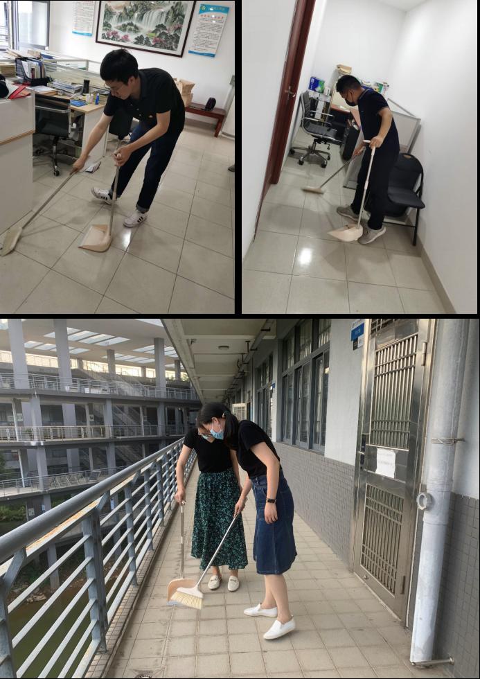 应用化学系支部全体党员,拿起扫帚和拖把,齐心协力,对对综合实验楼12L的三楼公共区域和多个办公室进行了全方位的清理和打扫,大家发扬了不怕苦、不怕累的精神,彻底清理了犄角旮旯的粉尘和废弃材料等,不仅对办公室和走廊的地面进行了打扫,而且对围栏、门窗等进行了清理,使办公环境焕然一新。