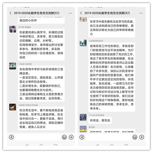 听完“在线教学第一课”,大家反响热烈,纷纷通过在线讨论方式发表了自己的感想,并围绕‘我们自身可以从哪些方面开始“行”,踏上求“知”的新征程’、“作为学生党员如何发挥先锋模范作用为此次大考交一份满意的答卷”等问题进行了交流讨论。