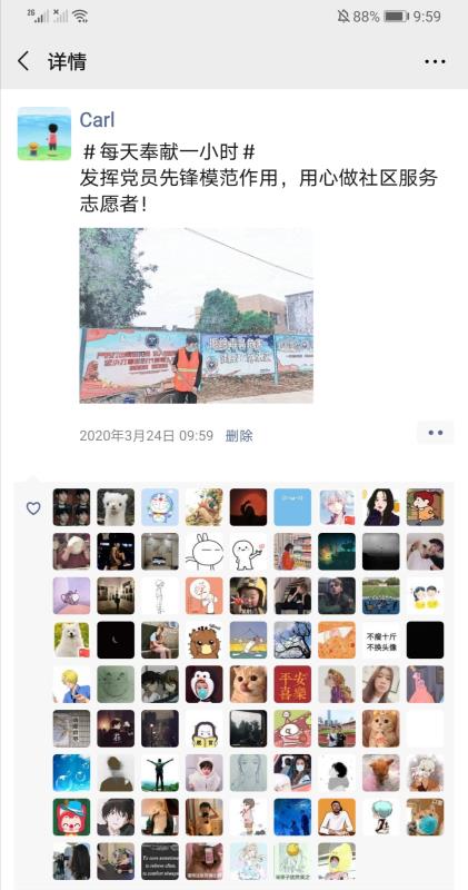 3.感受:我很高兴能在疫情防控中出一份力,当参与其中时我发现我更加有理由相信打赢这场战"疫"指日可待,因为我看到了社区的尽职尽责,看到了居民的配合。希望处处安好,人人和谐,户户康顺!武汉如此!中国如此!