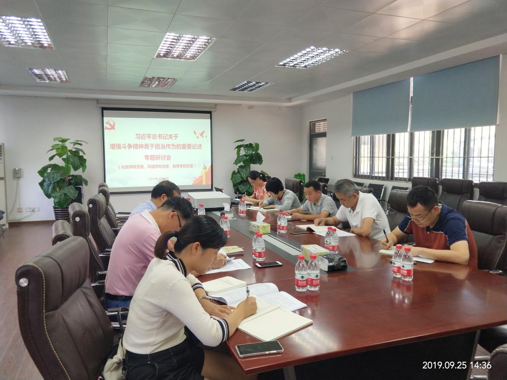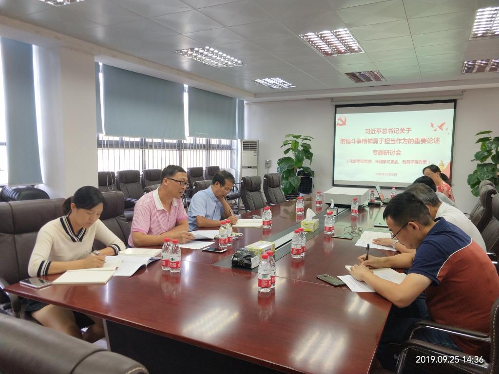 本次研讨会主题为:习近平总书记关于增强斗争精神勇于担当作为的重要论述。在会上,三位党委书记分别作了重点发言:教育学院杨万江书记结合自身工作,从安全工作、学生工作、保密工作、意识形态工作谈了感想和体会,并结合美国、香港等国内外的实际情况,指出发扬斗争精神的及时性和必要性;环建学院李纠书记结合精准扶贫、蓝天保卫战等实例,重申发挥基层党组织的战斗堡垒作用、发挥共产党员先锋模范带头作用的必要性;sunbet申搏夏勇书记结合习总书记对中青班干部的谈话,分析了:为什么要斗争、斗争的方向、如何进行斗争等问题,并强调树牢“四个意识”、坚定“四个自信”、做到“两个维护”。在座的其他党员中层领导干部分别从:和平年代如何谈斗争精神,五.四运动精神对00后学生的影响,敢于和困难、风险作斗争,从理论角度、历史角度、时代角度、实践角度发扬斗争精神等多方面、多角度做了交流发言。