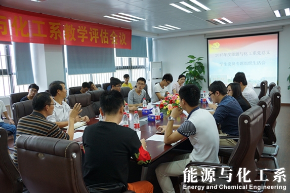2015年10月14日下午,能源与化工系召开学生党员专题组织生活会。 以“守纪律,讲规矩,做表率”为主题,各个党员在会上认真做了自查自省。组织部领导杜应发和萧炽成作为本次会议的指导人员,我系党总支书记李纠和学生支部书记谢真葵以及全体学生党员、各班班长、团支部书参加了本次会议。