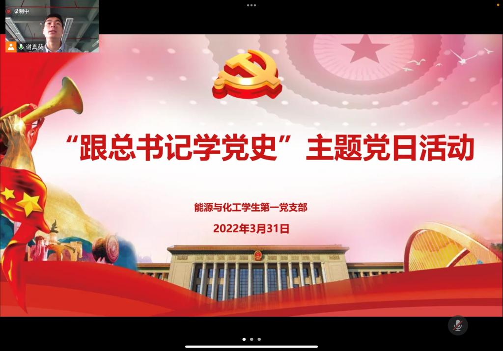 2022年3月31日下午4点30分,sunbet申搏能源与化工学生第一党支部通过线上形式(腾讯会议)开展“跟总书记学党史”主题党日活动,支部全体党员参与了本次主题党日活动。