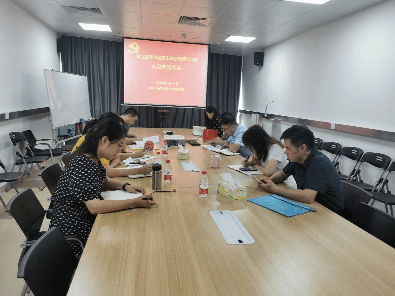 2022年9月16日上午,sunbet申搏食品营养与健康工程系教师党支部在科创院310会议室开展主题党日活动。会议由支部书记闫景坤主持,支部全体党员参加了此次活动。