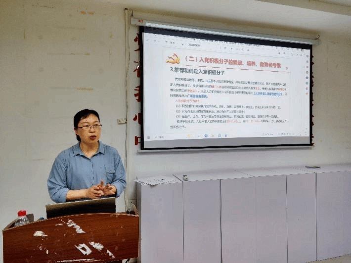 课上,姜蓉老师围绕“发展党员工作流程”,详细讲授了党组织对入党申请人、入党积极分子、发展对象、预备党员的确定、培养、教育和考察,阐述了向党组织靠拢成为一名中共正式党员的相关要求。