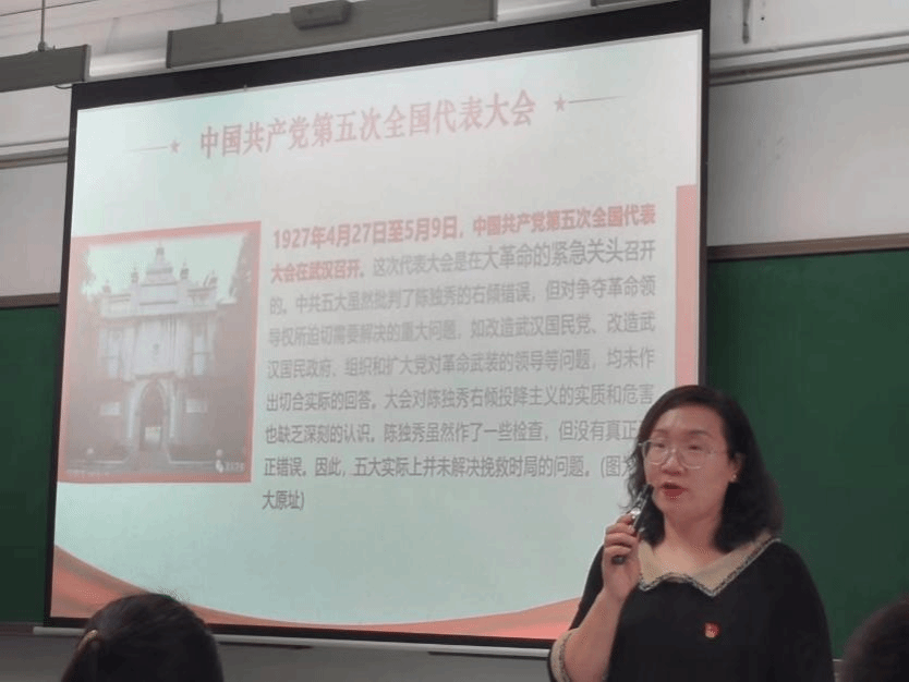 课上,李利平老师围绕“学党史悟思想,知党爱党跟党走”主题,分别从新民主主义革命时期、社会主义革命和建设时期、改革开放社会主义现代化建设时期、中国特色社会主义进入新时代,带领同学们走进百年党史,回顾中国共产党的奋斗历程和伟大成就,汲取开拓进取的勇气和力量。