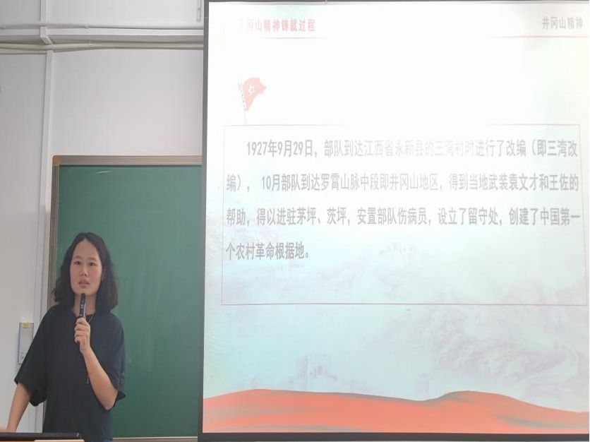 课上,王馨老师围绕“追寻红色记忆,传承红色精神”主题,介绍了井冈山革命斗争时期的艰险,指出井冈山的革命斗争揭开了中国革命星火燎原的大幕,孕育了伟大的井冈山精神;并详细讲授了“坚定执着追理想”、“实事求是闯新路”、“艰苦奋斗攻难关”、“依靠群众求胜利”的井冈山精神内涵。