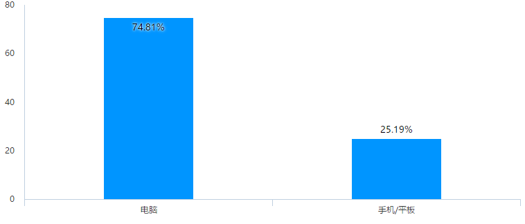 学生网络学习时间较长。如图3所示,80%左右的教师平均每天网络授课时间为1小时和2小时,授课超过5小时以上的较少。但对于学生每天网络学习时间(如图4),以3-6小时为主,且主要以电脑学习为主。从调查数据可看出学生每天网络学习时间较长,从收集上来的意见反映学生对于线上学习还未能完全的适应。