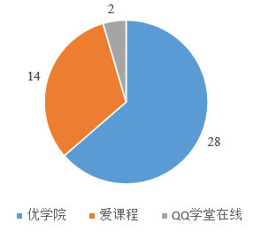 “优学院+爱课程为主,学堂在线为辅”的多元线上教学平台。本学期开设44门课程,其中28门优学院、14门爱课程和2门学堂在线,如下图1所示。除教学平台外,全部课程都结合了QQ群、腾讯会议以及微信群等方式进行讨论和答疑。