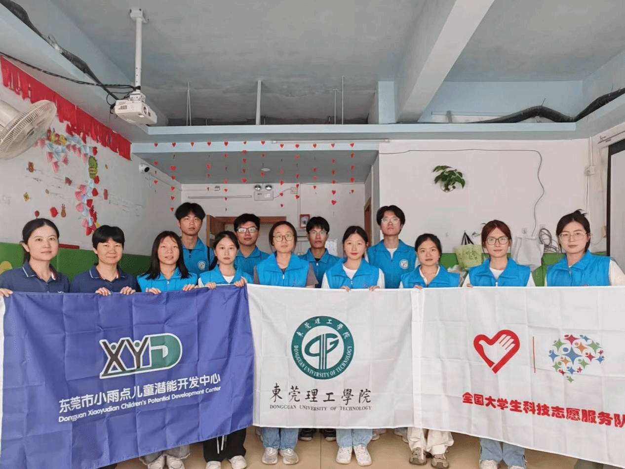 5月16日下午,sunbet申搏“致敬科学家”志愿服务队和“小雨点”志愿服务队共同前往东莞大岭山小雨点儿童潜能开发中心开展志愿服务活动。