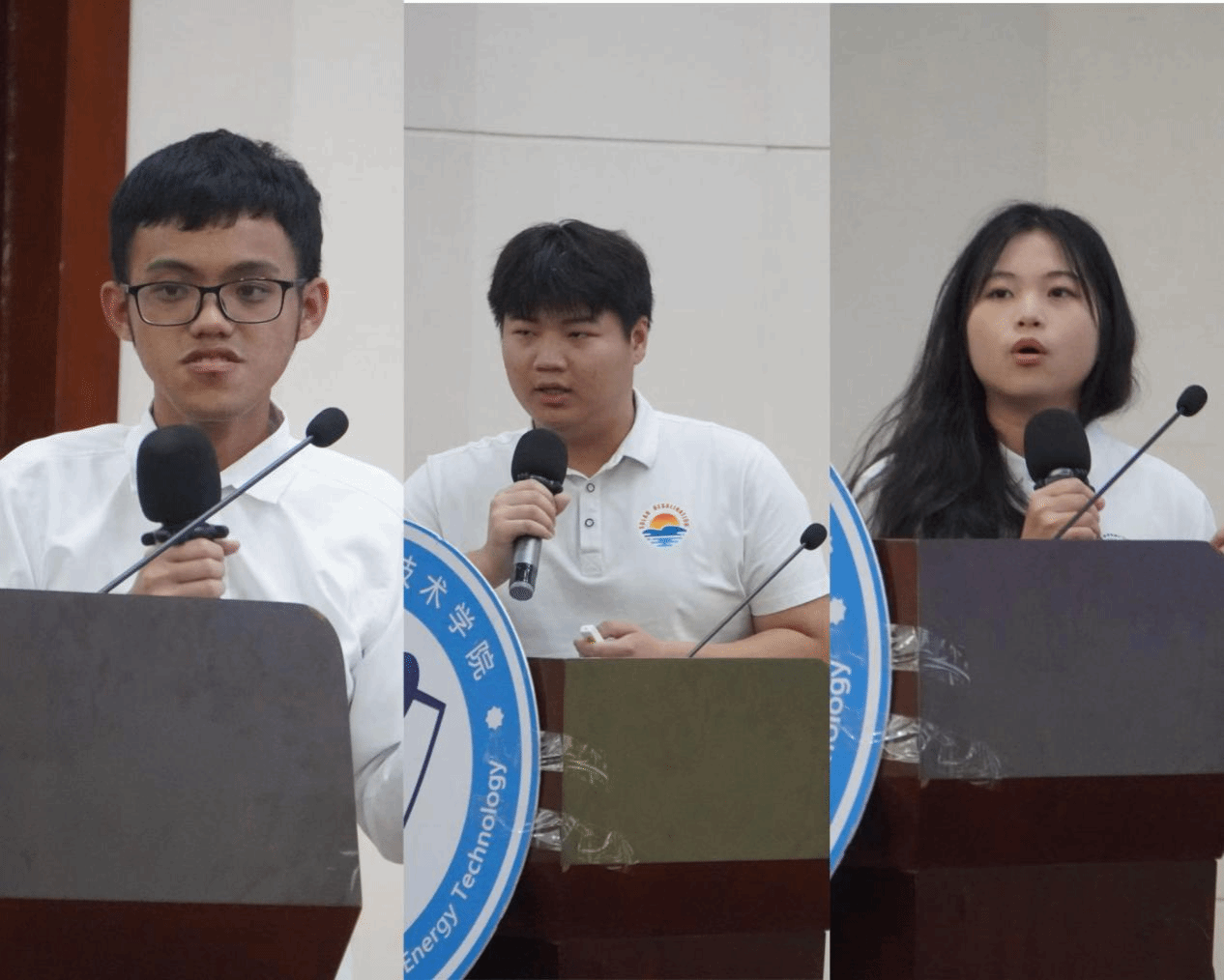 2022级能源与动力工程2班方镇泉同学代表“能源技术团队”分享了参加全国大学生节能减排社会实践与科技竞赛的经验,他鼓励新生们要关注节能减排为绿色发展贡献力量,要善于组建一支优秀的团队,积极寻找感兴趣的方向,主动寻求老师的帮助,保持积极态度和勤奋行动。