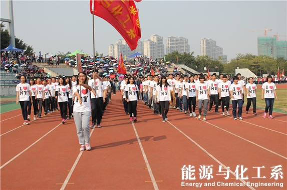 11月20日下午,2014年校运会开幕式在学校真草运动场举行,我系响应学校的号召,积极参与,参加本次开幕式人员有能源与化工系全体教职工与在校学子。 14:30分,开幕式正式开始。在各院系方阵展示中,我系方阵展示队迈着矫健的步伐并排着整齐的队伍喊着口号,昂首阔步走过主席台,观众台嘹亮的口号声久久回荡。开幕式过后,就进入田径赛与趣味活动精彩环节。 在趣味活动学生组中,我系学子团结协助,全力以赴,在王子背公主中,男女同学积极配合,虽然没有拿到较好名次,但大家没有气馁,在步步高升游戏中,同学们一起努力,在2分钟中跳出43个的较好成绩。特别是在径赛男子100米中骆伟强荣获第一名。其他运动员们也在比赛中赛出风格,赛出自我。而在教工组中,教师们势如破竹,在各个项目中都取得不错的成绩。其中实心球比赛中,老师周志林获得教工女子组实心球第五名。教工男子组100米中,老师谢谢真葵与王文豪取得不错的成绩。 此次校运会展现出能源与化工系的团结魅力,体现了运动员们爱运动爱生活与奥运会精神。更多精彩明天继续。