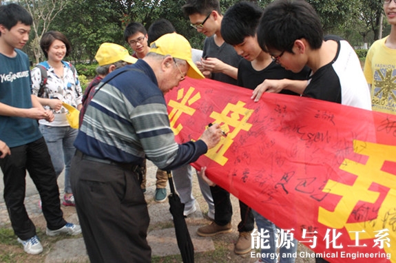 3月20日,能源与化工系13级化学工程与工艺1班全体同学带着印着“我光盘 我光荣”字样的横幅、大头笔等东西,前往松湖烟雨景区进行“光盘”活动的宣传。在活动过程中,志愿者们积极给游客们讲解和展示,使人们更加了解了“光盘”意义,让节约粮食的观念更加深入人心,促进人们养成节约的习惯。