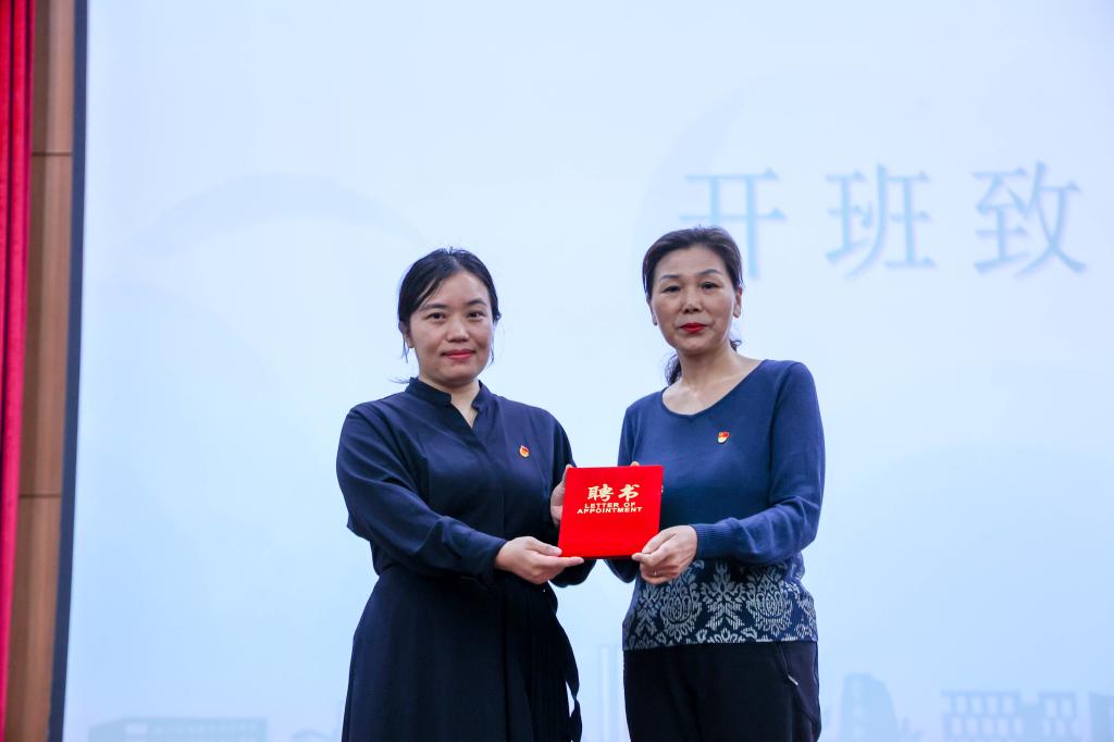 sunbet申搏团委负责人刘哲向谢敏副教授颁发“青马班特聘导师”聘书。