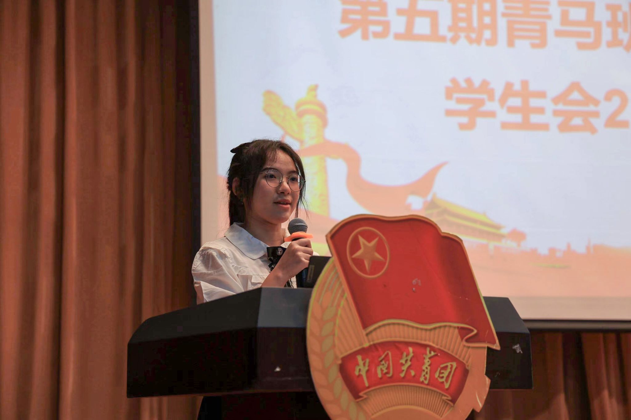 第五期青马班学员代表苏维恩向组织与筹办青马工程的各位老师和工作人员们表达谢意,承诺会认真学习马克思主义中国化的最新成果,以理论联系实际,了解国情,认识社会,努力成为一名合格的青年马克思主义者。她倡议全体学员,要坚定理想信念,积极将理论知识投身到日常实践中,还要注重创新意识和能力的培养,主动担起时代赋予的重任,增强自身使命感。