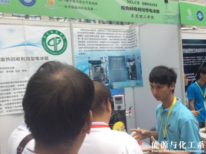 2015年8月9-12日,能源与化工系的车伟武、黄浩雄、曾科、邱东4 位同学在指导老师张刚博士的带领下赴黑龙江哈尔滨工程大学参加第八届全国大学生节能减排社会实践与科技竞赛决赛。在为期4天的比赛中,全国各地68所高校的161件作品进入到决赛,展开最后的奖项争夺。来自能源与化工系专业的两支团队在决赛中表现突出,成绩优异,所设计的“废热回收利用型电冰箱”项目和“户外运动器材发电装置”项目以节能创新的功能以及出色的现场展示分别荣获大赛二等奖和三等奖。