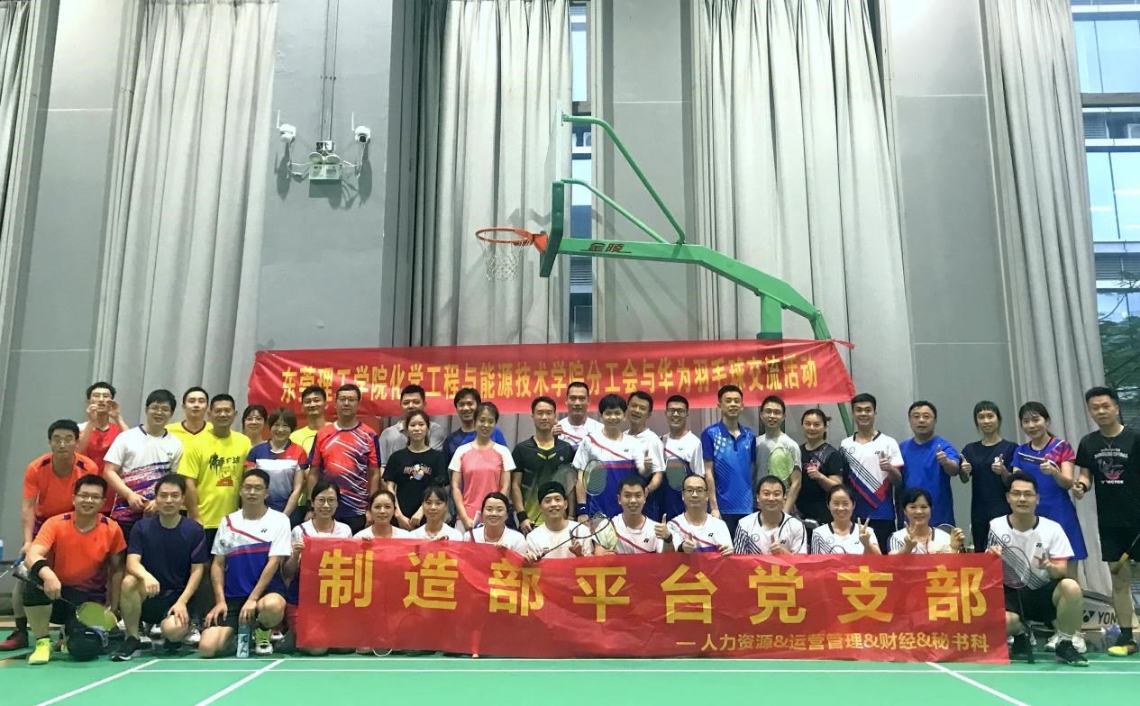 sunbet申搏分工会为进一步丰富教职工业余文化生活,搭建我院与行业巨头华为互动交流学习平台,7月4日,我院工会接受华为制造部平台党支部的邀请,在松山湖天安云谷球馆举办了一场羽毛球联谊赛。
