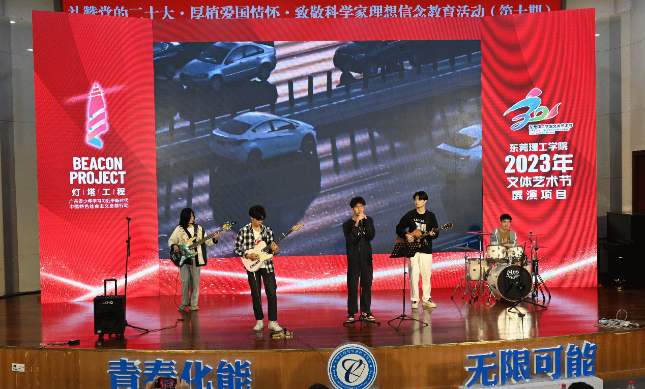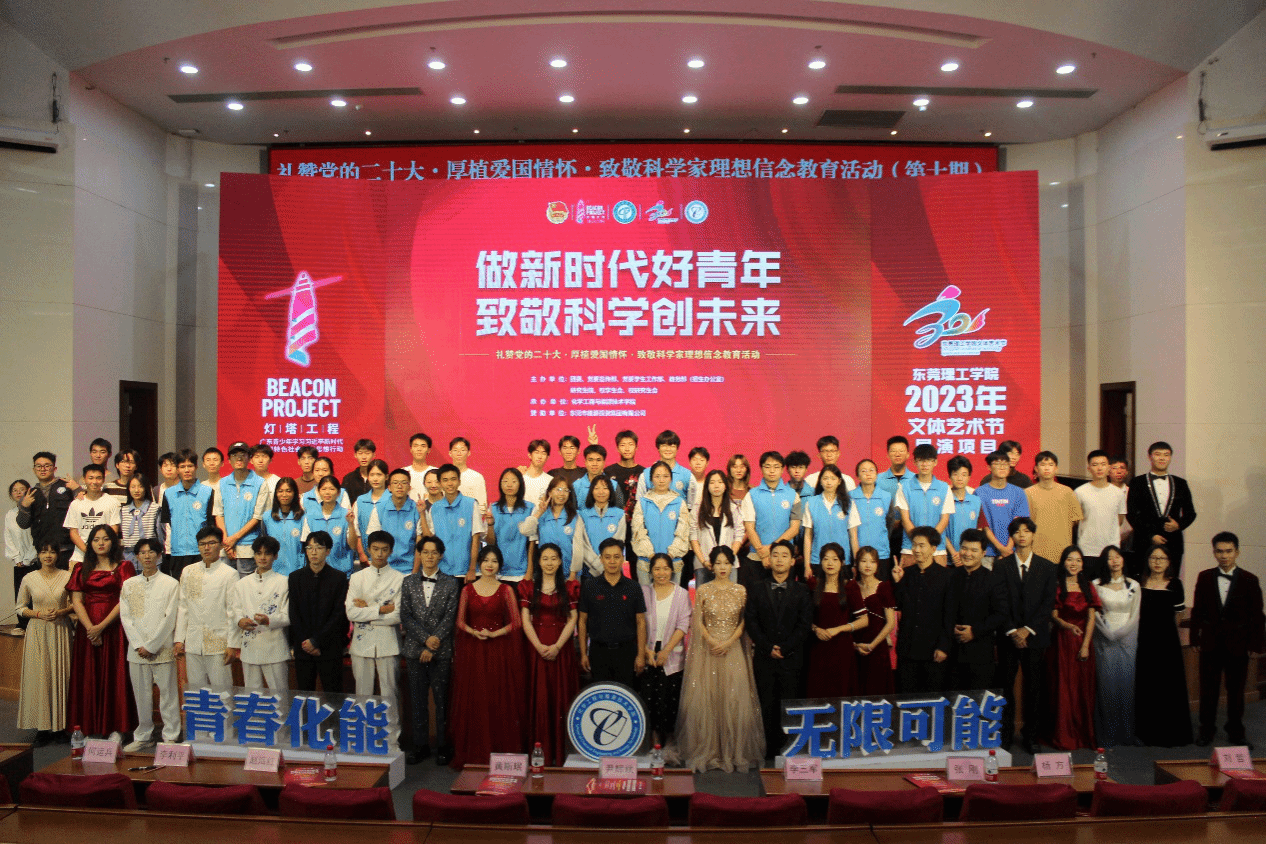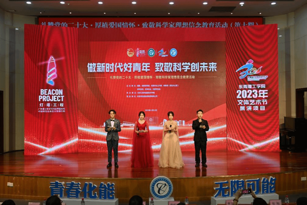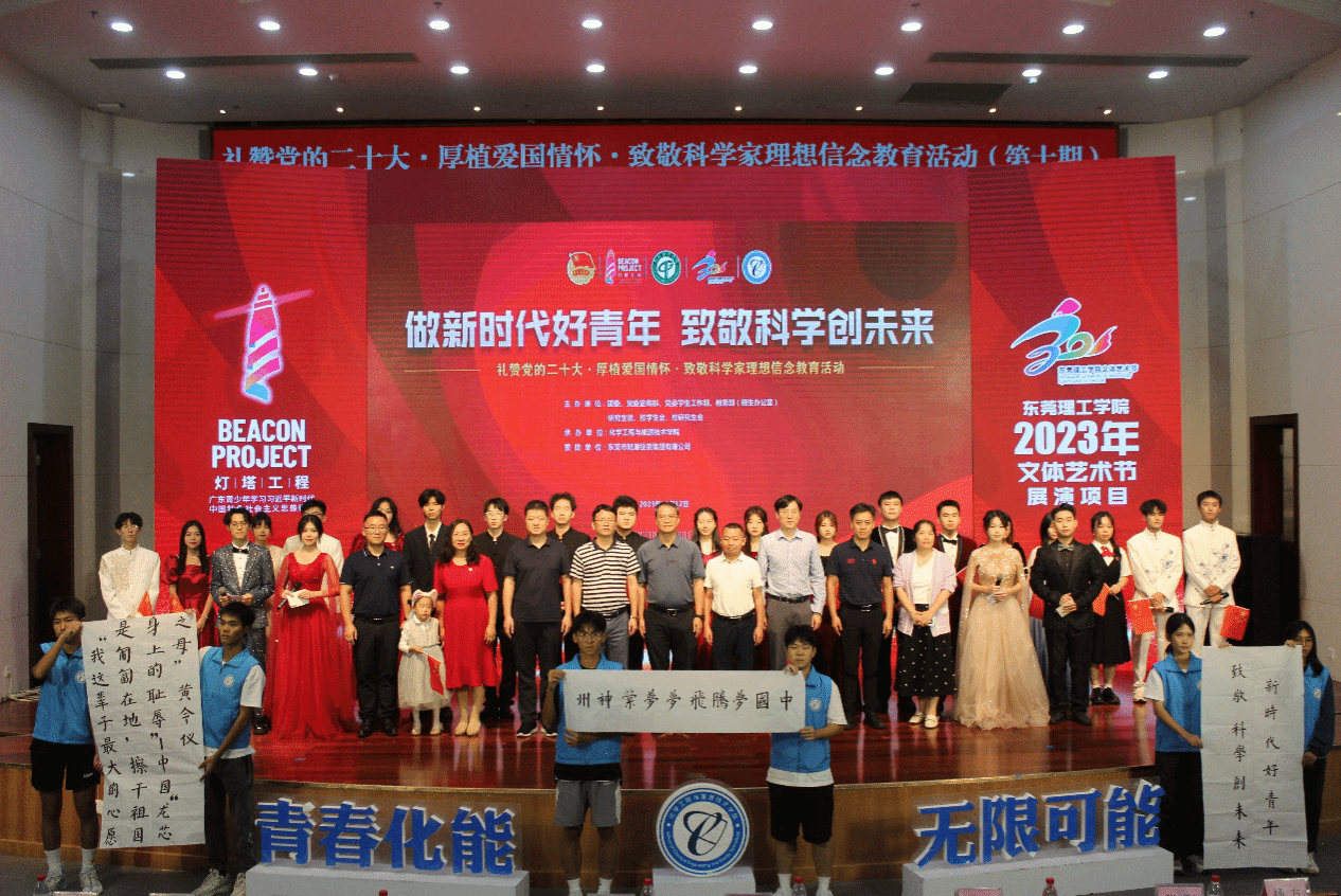 2023年“灯塔工程”东莞理工学院青年大学生思想政治引领精品项目、文体艺术节展演项目之“礼赞党的二十大•厚植爱国情怀•致敬科学家”理想信念教育活动第十期于11月12日晚在学术会议中心阶梯报告厅举行。本次活动由学校党委宣传部、党委学生工作部、团委、教务部(招生办公室)、研究生院、校学生会、校研究生会共同主办,sunbet申搏,sunbet申搏承办。sunbet申搏党政领导班子以及企业嘉宾东莞市能源投资集团有限公司、东莞海丽控股集团有限公司负责人出席,sunbet申搏师生代表等400多人参加活动。