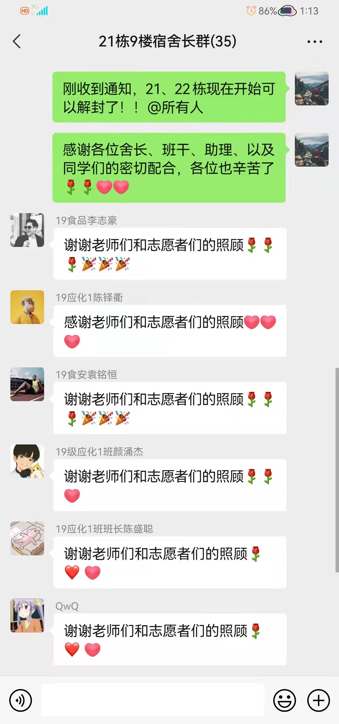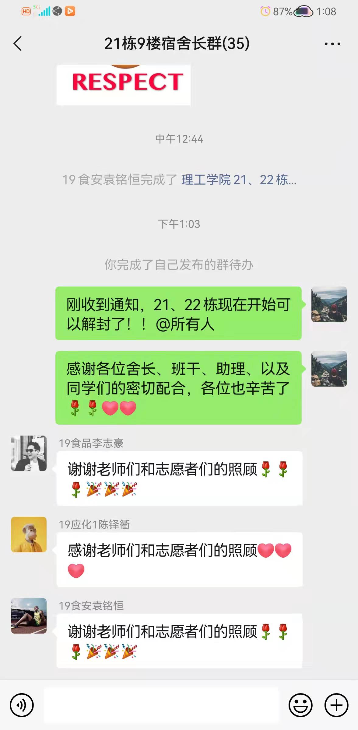 师生无私奉献、齐心抗疫的热情,感动了封闭管理区域的学生们,疫情防控现场就是一堂画面生动而鲜活的思政课堂!学生们纷纷在微信上表达了感谢党、感谢学校、感谢老师们的感激之情,师生互动一幕幕感人温情画面令人动容。