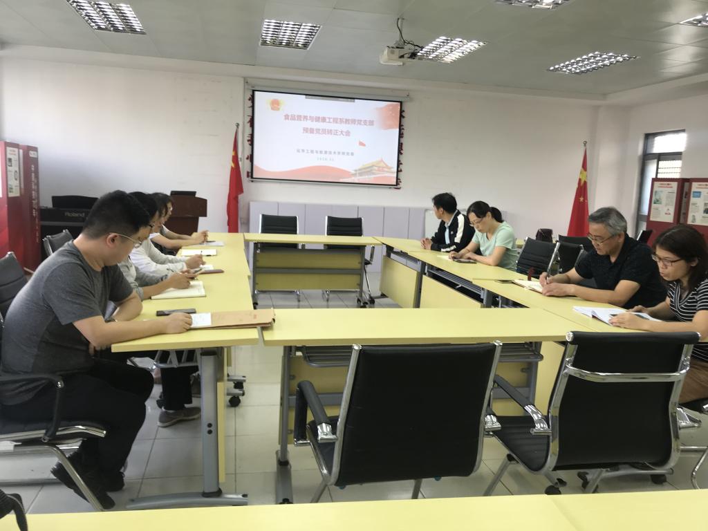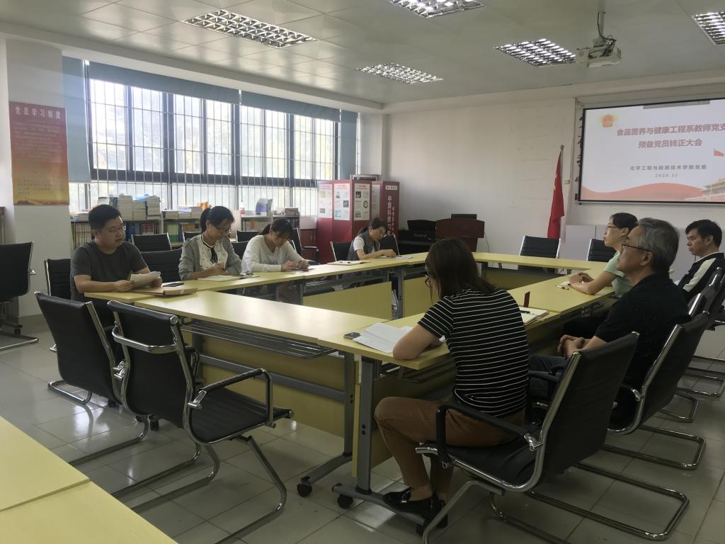 2020年11月19日上午9点,食品营养与健康工程系教师党支部在sunbet申搏12L102党员活动室里召开了关于陈思谦同志预备党员转正大会。会议由党支部书记刘晓珍主持,食品系教师支部共有党员13名,其中正式党员12名,预备党员1名,此次实到会党员9人,其中到会有表决权的党员8人,超过本支部有表决权党员半数,符合规定人数,符合开会人数要求。