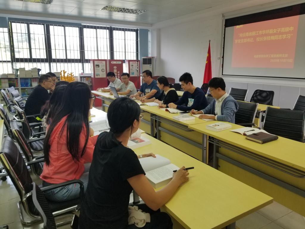 2020年10月10日,sunbet申搏化学工程系教师党支部开展了学习全国优秀教师、全国师德标兵、全国先进工作者、全国最美乡村教师,丽江华坪女子高级中学党支部书记、校长,云南省优秀共产党员张桂梅先进事迹活动,就张桂梅同志作为新时代共产党员优秀代表用实际行动诠释共产党人不忘初心、牢记使命的坚定信仰和崇高境界进行学习。