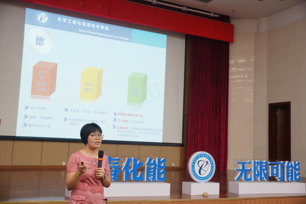 党总支副书记柳卓君围绕新生最关注的5个问题,娓娓讲述了大学生的如何树立学习目标和人生目标,如何成就更美好更优秀的自我等内容。