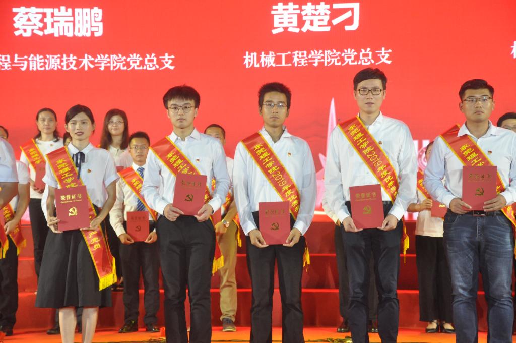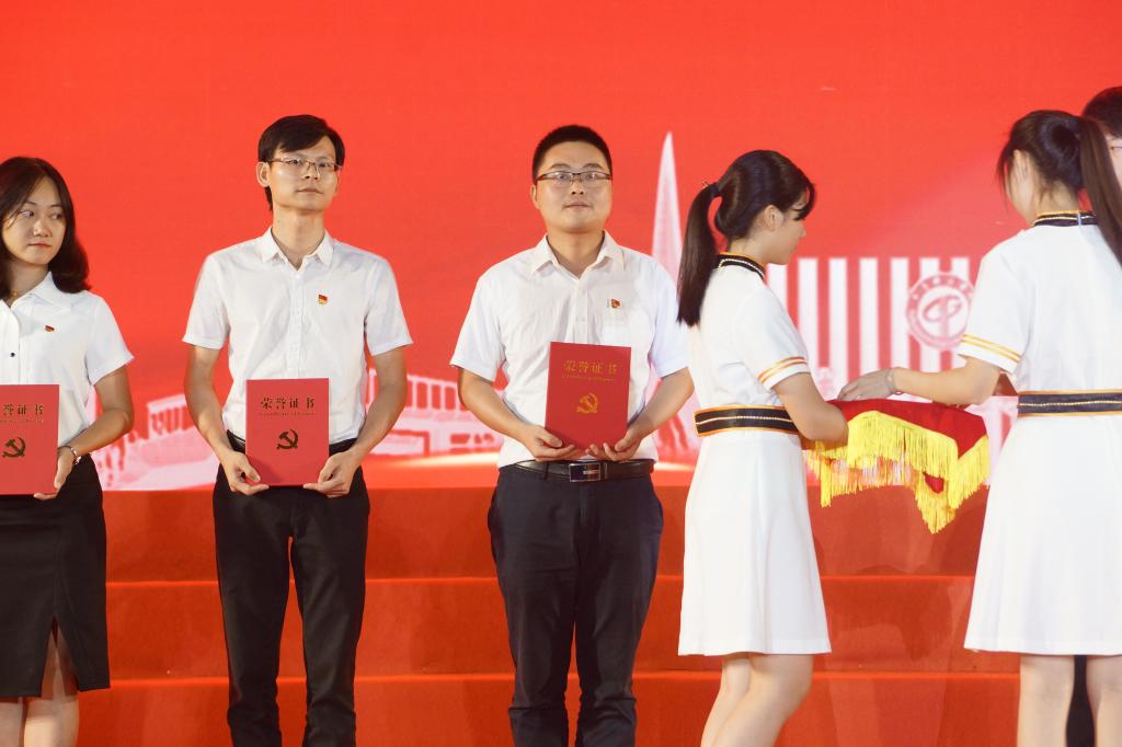 雄壮的国歌,拉开表彰活动序幕。本次活动共表彰了全校52名优秀党员、10位优秀党支部书记、10个优秀主题党日和10个优秀微党课视频,其中sunbet申搏喜获多项表彰。校领导成洪波、马宏伟、赖日辉为获得者颁奖。获奖名单如下:
