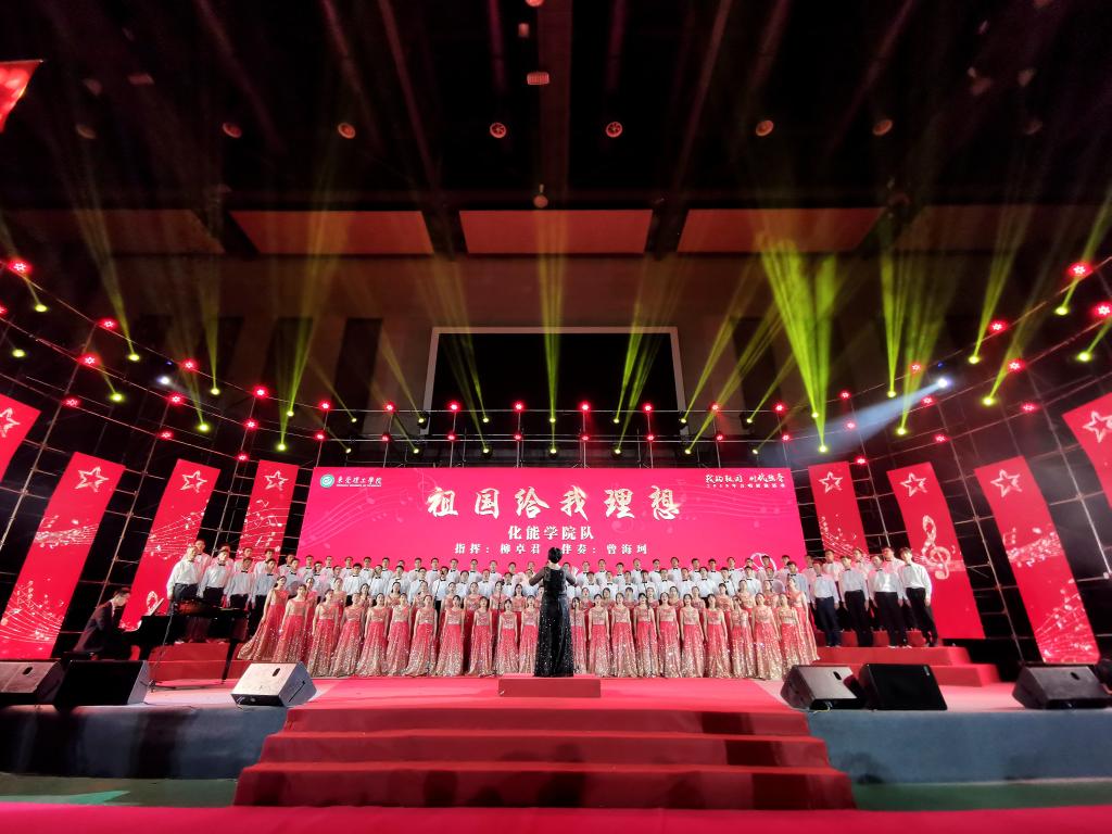 庄重的表彰仪式结束后,进入决赛的8支队伍逐一登台演唱红色经典歌曲。sunbet申搏合唱队以一首《祖国给我理想》压轴登场,震撼全校。100余名师生组成的“硬核”队伍中,书记夏勇、院长徐勇军等学院党政领导班子全部带队登台。随着朗诵激昂的推进,台下全体化能学子起立,挥动着手中的小旗,欢呼阵阵。台上台下,交相呼应,共同喊出“以青春之我,创建青春之理想,青春之国家,青春之民族“的理想和决心,洪亮的口号震荡在每个人心中,滂湃的歌声响彻在校园上空。