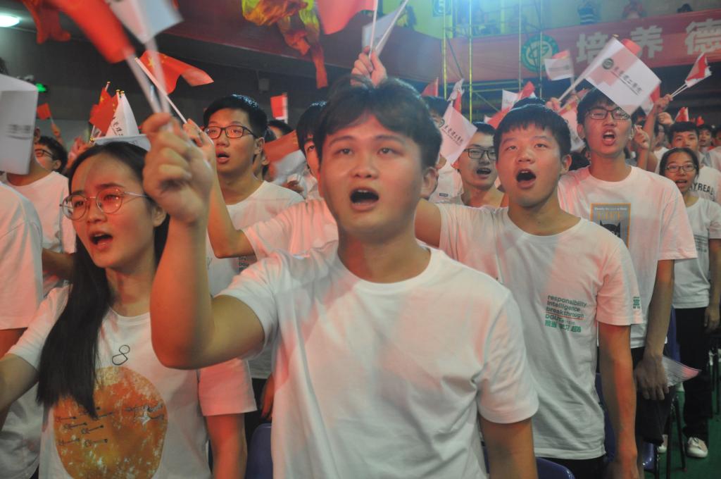 活动最后,学校领导与全场师生一边挥舞着手中的五星红旗和校旗,一边高唱《歌唱祖国》,嘹亮的歌声,祝愿伟大祖国繁荣昌盛,祝福莞工明天更加美好。