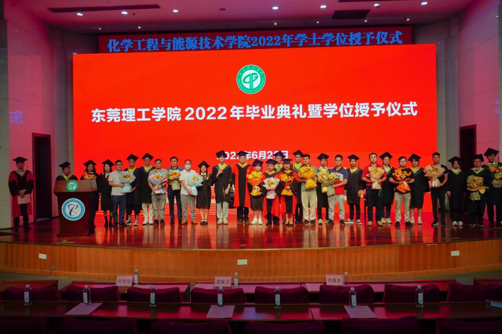 在当日上午结束的东莞理工学院2022年毕业典礼暨学术学位授予仪式中,我院优秀毕业生参加典礼,2018级辅导员张博、能源系专任教师陈捷超受邀出席,并接受献花。