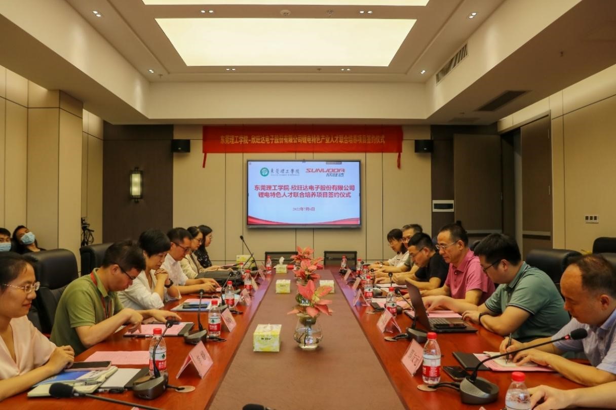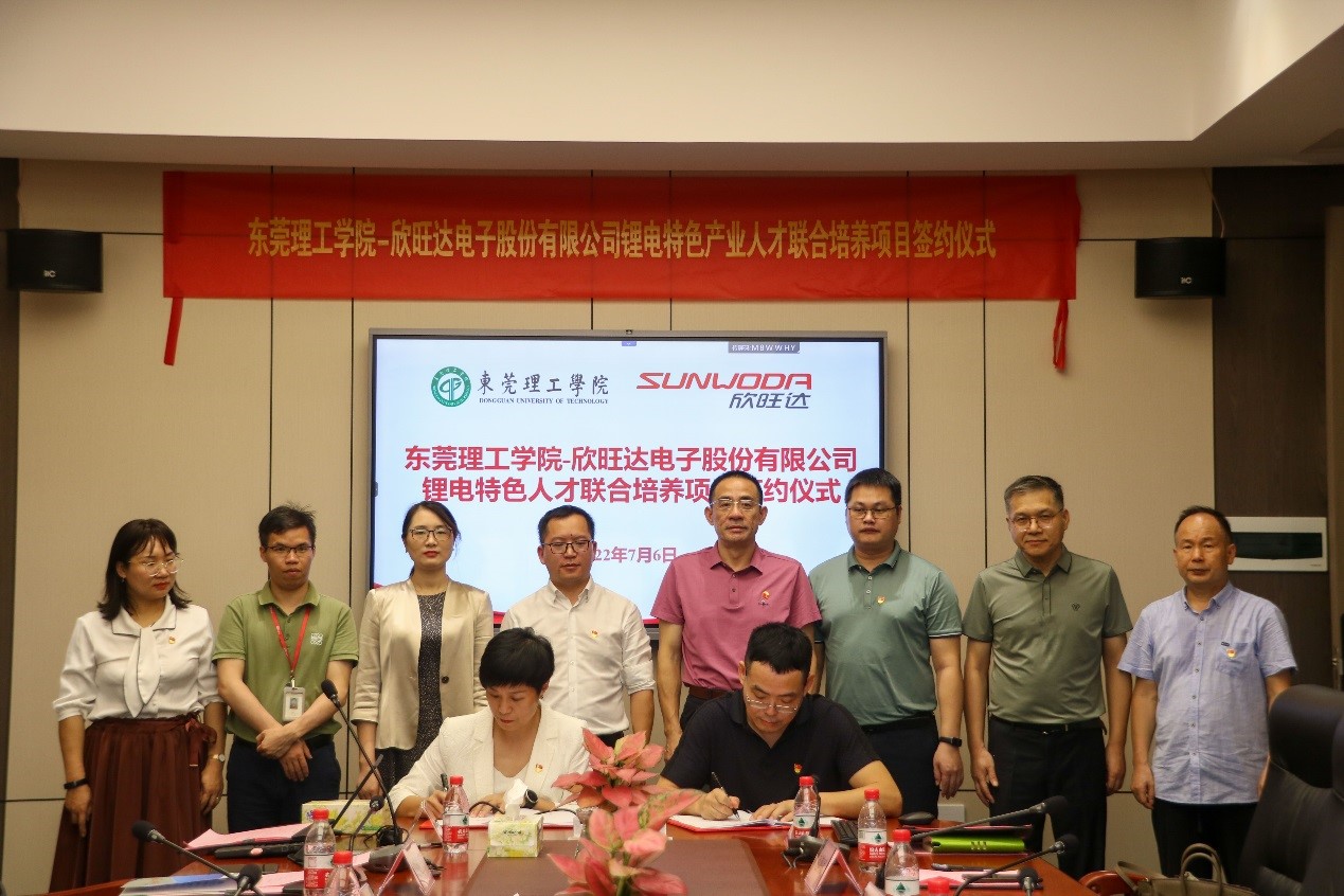 为培养面向国家新能源战略需求的高素质锂电产业卓越工程师,2022年7月6日,东莞理工学院与全球锂电龙头企业欣旺达电子股份有限公司签署了锂电特色产业人才联合培养项目协议。欣旺达电子股份有限公司党委书记、总裁助理、欣旺达大学执行校长尹庆玲,欣旺达动力新能源有限公司制造副总经理刘桂松,欣旺达电动汽车有限公司生产副总经理廖建荣,欣旺达电子股份有限公司欣旺达大学高级经理刘艳玉,东莞理工学院党委委员、副校长杨敏林,sunbet申搏,sunbet申搏党委书记兼院长徐勇军,教务处副处长廖文波,东莞理工学院二级教授、项目总负责人赵鸿斌,以及学院领导、教师代表、产业项目2019级学生代表等出席了签约仪式。此次双方成功签约联合培养适应新时代要求的高质量锂电产业人才标志着我校在产业人才培养和卓越工程师建设上又取得了新的重大突破。