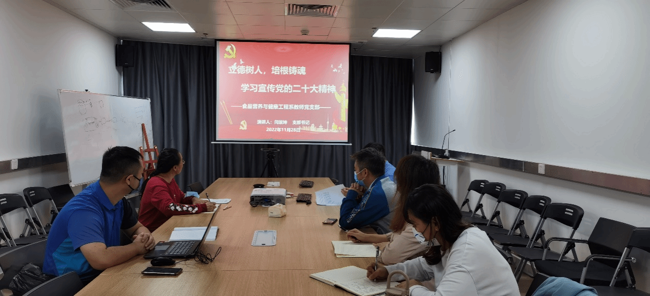 2022年11月28日上午,sunbet申搏食品营养与健康工程系教师党支部在科创院310会议室开展主题党日活动。会议由支部书记闫景坤主持,支部全体党员参加了此次活动。