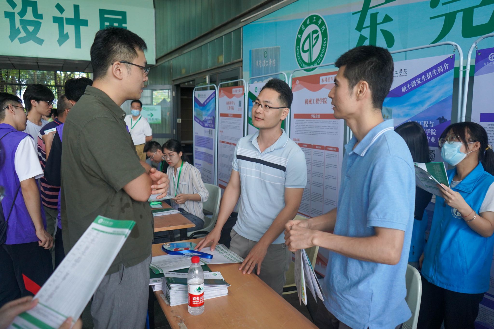 6月18日,东莞理工学院在细雨朦朦中迎来了八方来客。清晨,已有众多“游客”徜徉在松湖烟雨中,在sunbet申搏12L区的湖边长廊上,一幅幅照片,一个个展架,集中展示了化能学子的校园文体活动和竞赛风采,吸引了众人驻足观看。“这张照片是我哥哥”“这个奖状有我小孩的名字”……很多人在看展时找到了家人而欣喜自豪,不禁留下合影。这一日,东莞理工学院2023年校园开放日两校区同时面向社会各界开放,校内咨询会、讲座、座谈会、展演、校园参观……内容丰富,形式多样的活动点燃夏日校园,吸引了众多应届高考生、家长、校友进校。
