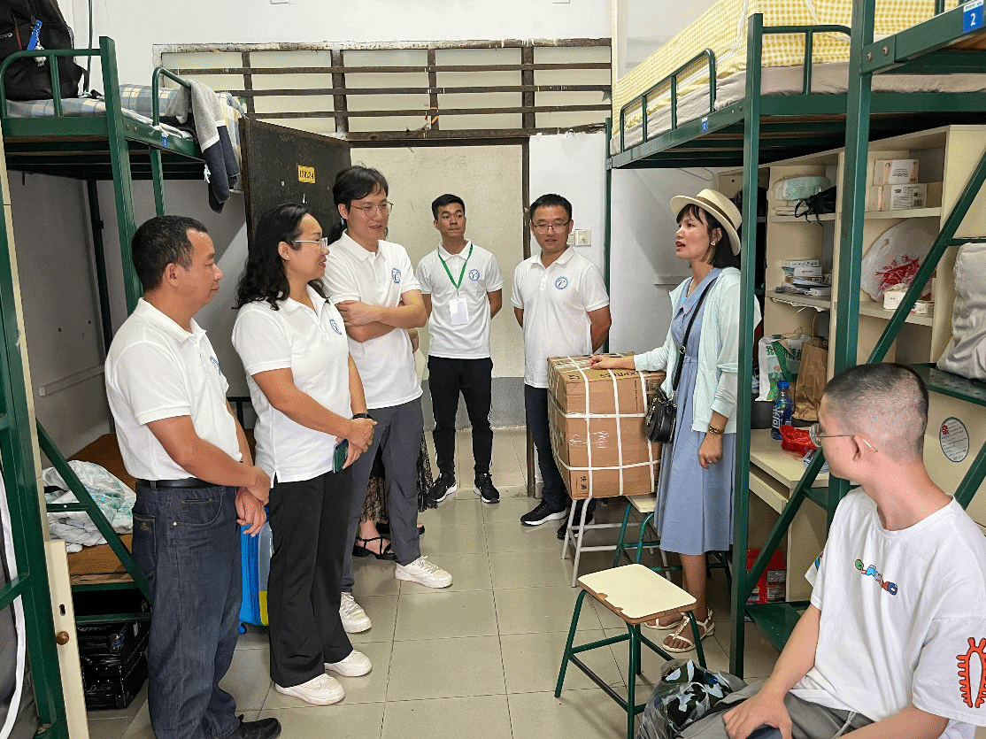 为进一步了解新生的入校状况,切实解决新生入校问题,我院党委书记尹辉斌、党委副书记李利平、副院长黄斯珉、副院长张刚、副院长何运兵、各年级政治辅导员以及23级新生班主任前往迎新现场,慰问关怀志愿者,详细了解工作情况,深入新生宿舍进行慰问。在走访宿舍过程中,学院领导与新生和家长亲切交流,对新生的到来表示热烈欢迎,询问其假期生活及到校感受,并且耐心细致地解答学生的疑惑、勉励同学们尽快融入大学新生活,珍惜时光,勤奋学习,努力实现人生理想,不负青春,不负时代,绽放青春光芒。新生们纷纷对学院领导的到来表示由衷的感谢,并表示将会尽快调整状态,积极融入化能大家庭,不辜负学校、老师和家人的厚望。